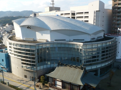 しまなみ交流館(テアトロシェルネ)は、1999年5月1日に開館した690席のホールを中心とした広域交流施設です。JR尾道駅前の白い貝殻のかたちをした建物です。